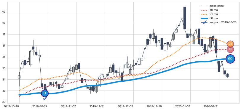 ⚁ MA20和MA30走势平行,且始终保持在短距离内,MA60始终在短中期均线下方,与短中期均线保持一定的距离,微微上行