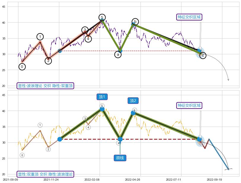 ➢ 规则平台型:子浪335结构,ⓐⓑ振幅接近,ⓒ点稍微超过ⓐ点结束位置