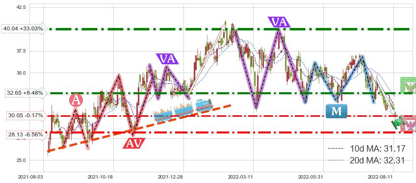 ♘ 阻力价格位32.65,可信任强度84.67%,距离最后交易2022-08-12形成的收盘价格30.10相差 +8.48%