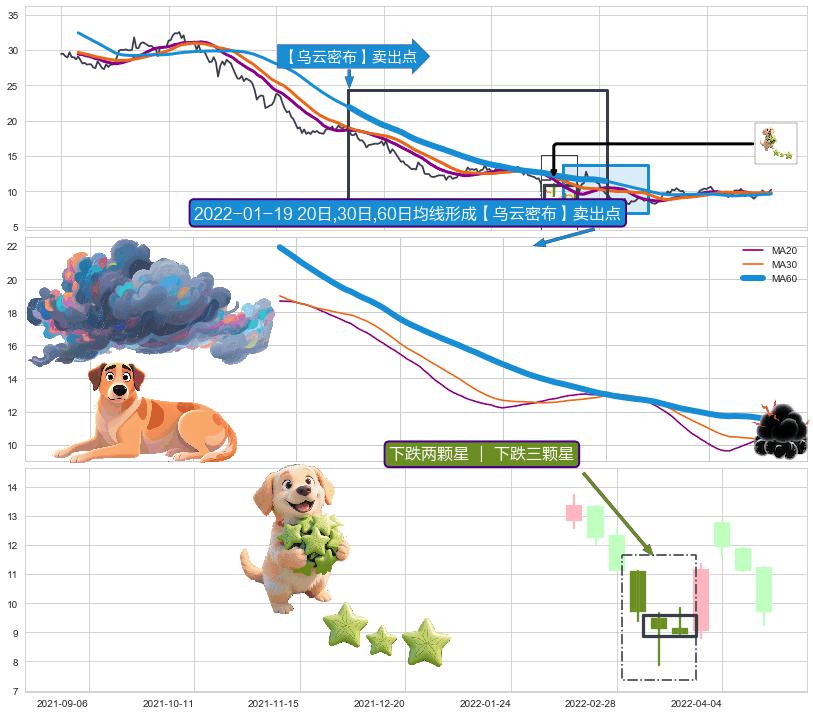 | 2 🅚:黄昏之星(夜星) ➕ 🎢:【乌云密布】卖出点均线组合卖出点信号形成后,猜想后续下行持续,下跌加速(趋势跟踪) ☞ 看空信号 ⇥ 【均线】交织【🅚线】⇥ 综合量化分数: 46 | > |