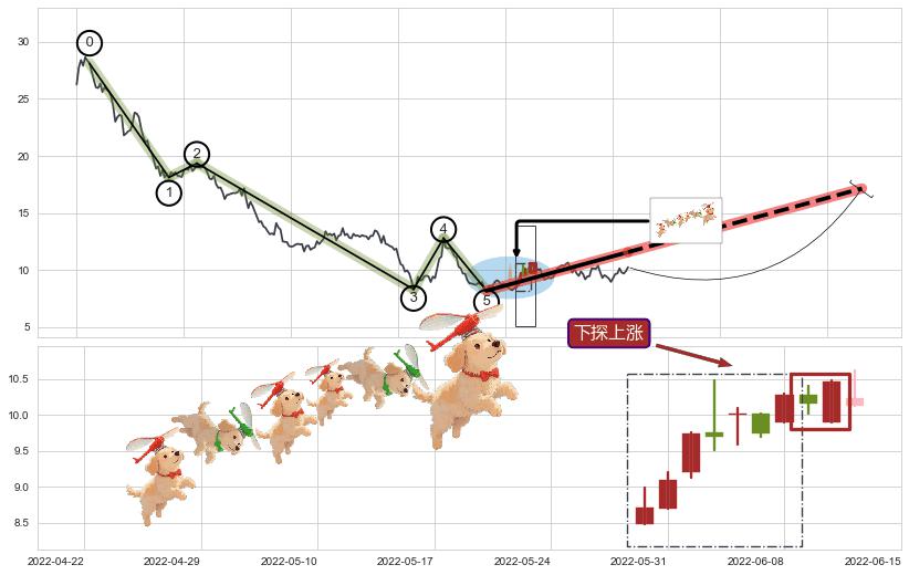 ➣ 低点影线(2022-05-19: 8.68 )→回踩→第一根k线高点(2022-05-13: 8.69 )