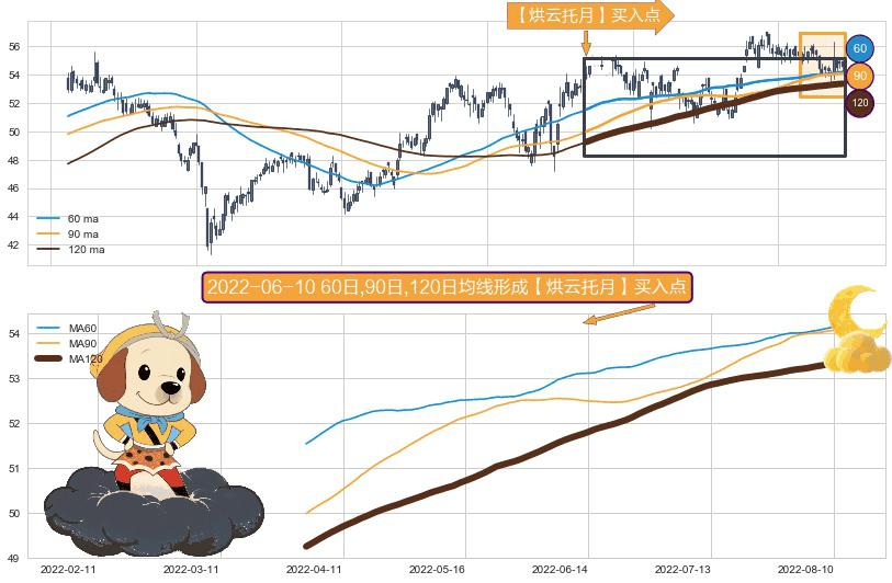 ⚀ 2022-03-31日-2022-08-12日显现 60日-90日-120日均线 【烘云托月】买入点 看多信号,后市看涨,买入