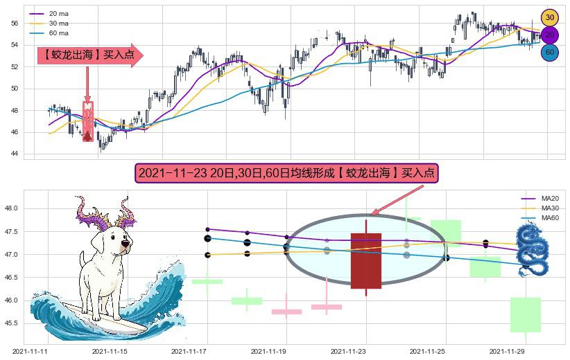 ⚀ 2021-11-23日显现 20日-30日-60日均线 【蛟龙出海】买入点 看多信号,后市看涨,买入