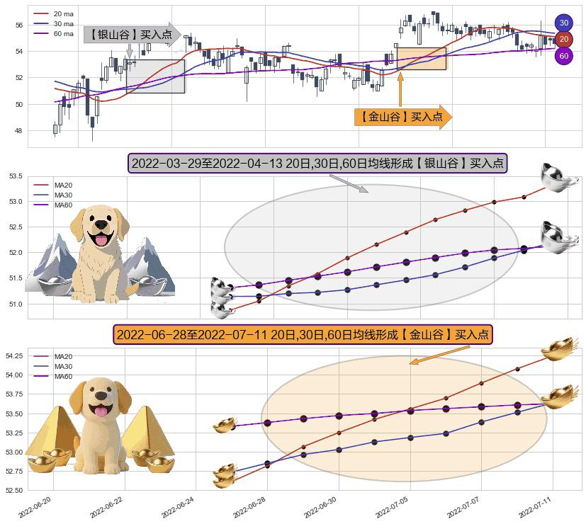 ⚃ 2022-06-29-日至2022-07-11-日显现 20日-30日-60日均线 【金山谷】买入点 其再次确认了买入信号,可靠性更强,买入