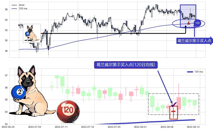 ⚀ 2022-08-08-日显现 葛兰威尔均线 120日均线 第②买入点 上升趋势的中继信号,后市看涨,买进信号