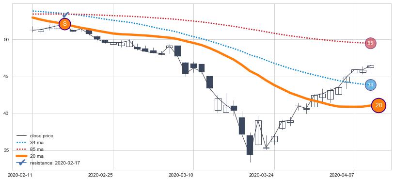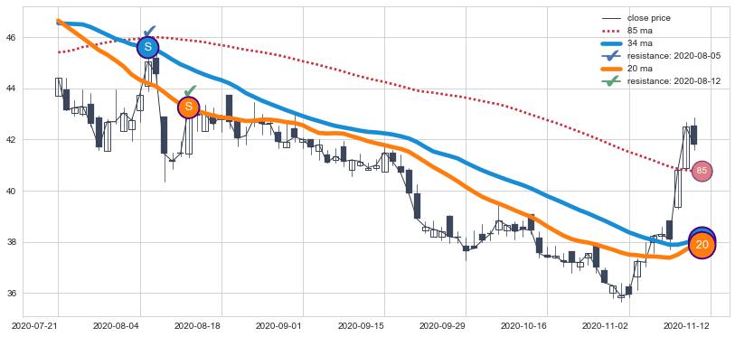 ⚁ MA60和MA90走势平行,且始终保持在短距离内,MA120始终在短中期均线下方,与短中期均线保持一定的距离,微微上行