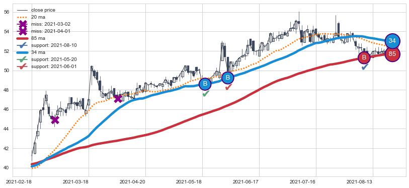 ⚄ 价格在均线获取支撑后再次向上反弹了【较短】距离, 第②买入点 支撑效果【仍需验证】