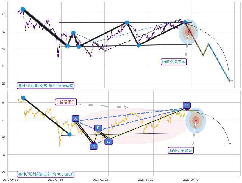 | 38 🅚:两黑夹一红 ➕ 📡:谐波螃蟹已到达d点:猜想c拉升到达d点后泄力性下沉下跌(均值回复) ☞ 看空信号 ⇥ 【🅚线】交织【图形】⇥ 综合量化分数: 42 | > |