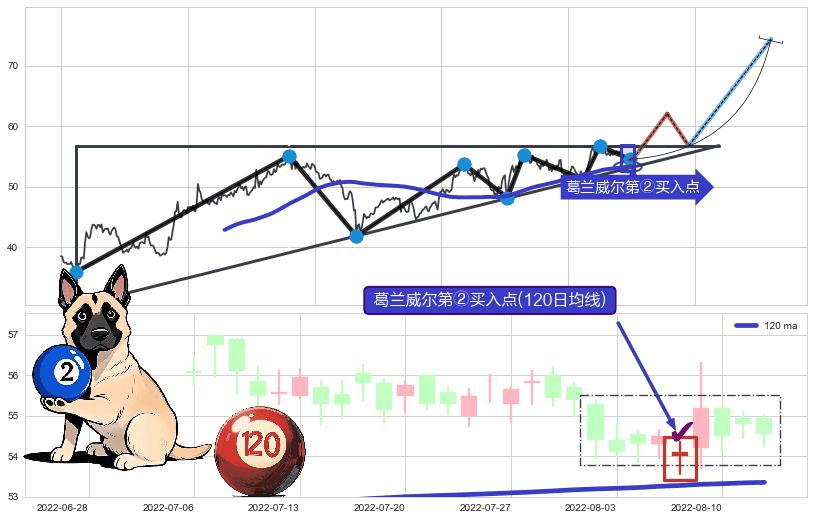 ➣ D点拟合预测价格75.57,距离最后交易收盘价格54.55相差 +38.53%
