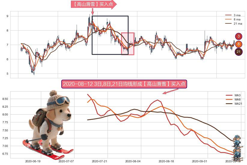 ⚀ 2020-07-13日-2020-09-11日显现 3日-8日-21日均线 【高山滑雪】买入点 看多信号,后市看涨,买入