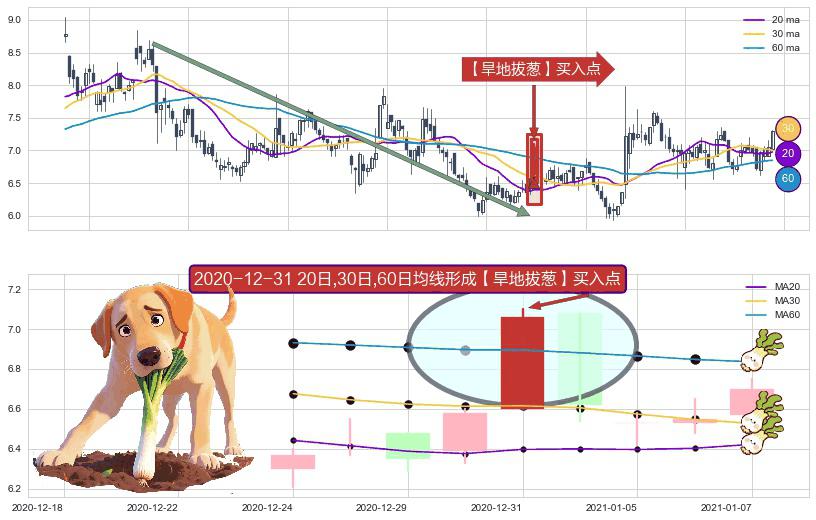⚀ 2020-12-31日显现 20日-30日-60日均线 【旱地拔葱】买入点 看多信号,后市看涨,买入