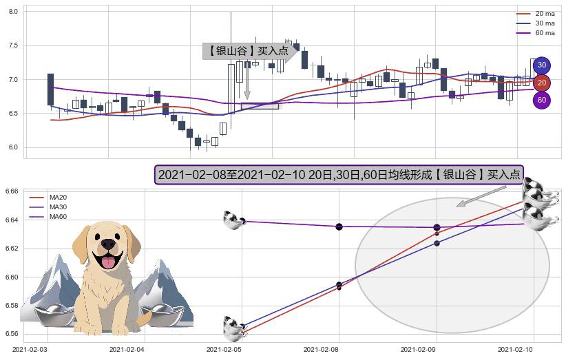 ⚀ 2021-02-09-日至2021-02-10-日显现 20日-30日-60日均线 【银山谷】买入点 看多信号,后市看涨,买入