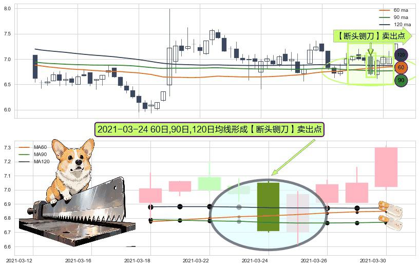 ⚀ 2021-03-24日显现 60日-90日-120日均线 【断头铡刀】卖出点 看空信号,后市看跌,卖出