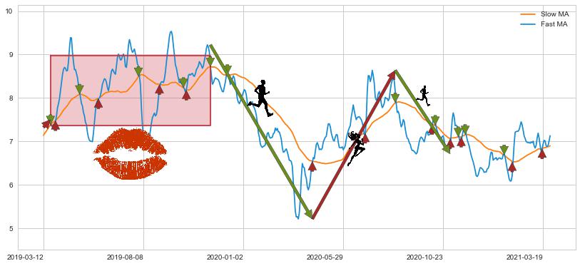 2019-03-21至2019-11-13 慢线与快线多次接触,存在上下穿越,有缠绕
