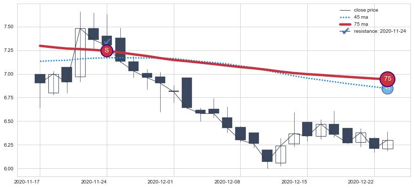 ⚂ 2021-03-16-日均线向下破位,2021-03-25-日重新上穿突破均线,均线支撑再次生效