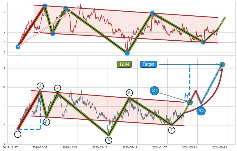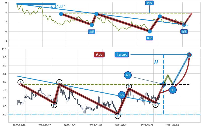 ➢ 图示②④⑥三个波谷均在 7.84 附近成功获得【支撑】→反弹上涨