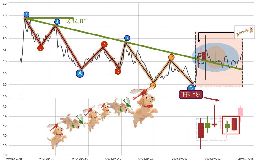 ➢ 最后的下跌趋势2020-07-06至2021-02-11:存在突破迹象,后续小反弹或者反转上涨