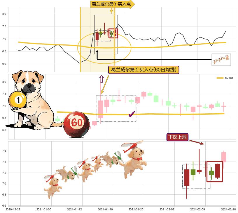 | 2 🅚:上涨两颗星 | 上涨三颗星 ➕ 🎢:葛兰威尔第①买入点买入点信号形成后,猜想后续下跌趋势反转上涨趋势(均值回复) ☞ 看多信号 ⇥ 【均线】交织【🅚线】⇥ 综合量化分数: 51 | > |