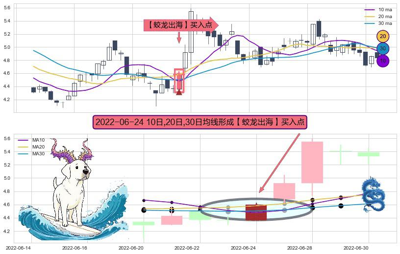 ⚀ 2022-06-24日显现 10日-20日-30日均线 【蛟龙出海】买入点 看多信号,后市看涨,买入