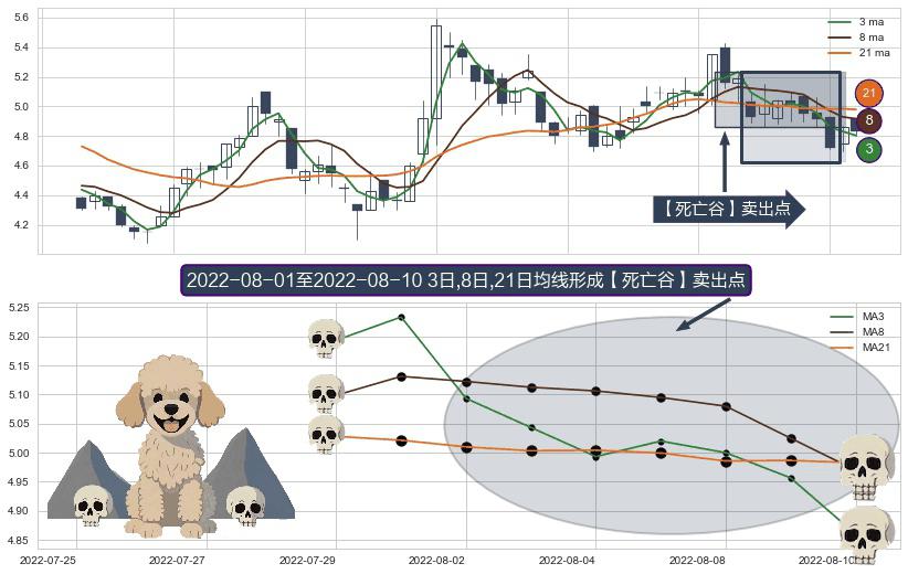 ⚀ 2022-08-02-日至2022-08-10-日显现 3日-8日-21日均线 【死亡谷】卖出点 看空信号,后市看跌,卖出