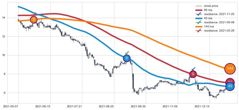 ⚁ MA60和MA90走势平行,且始终保持在短距离内,MA120始终在短中期均线上方,与短中期均线保持一定的距离,微微下行