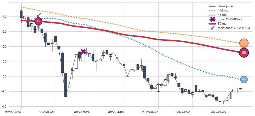 ⚂ 2022-01-20-日均线向上突破,2022-02-28-日重新下穿均线破位,均线阻力再次生效