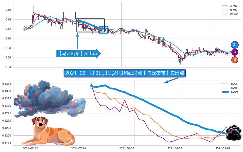 形态多维评估: ⚀ 2021-07-20日-2021-09-08日显现 3日-8日-21日均线 【乌云密布】卖出点 看空信号,后市看跌,卖出