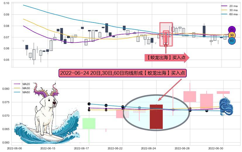 形态多维评估: ⚀ 2022-06-24日显现 20日-30日-60日均线 【蛟龙出海】买入点 看多信号,后市看涨,买入