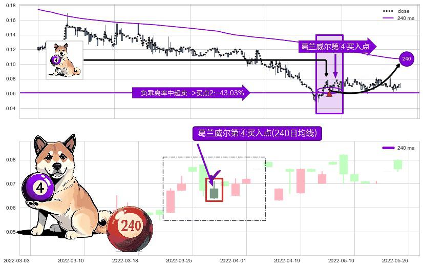 形态多维评估: ⚀ 2022-03-29-日显现 葛兰威尔均线 240日均线 第④买入点 下降趋势均值回复的短线反弹信号,后市看涨,买进信号