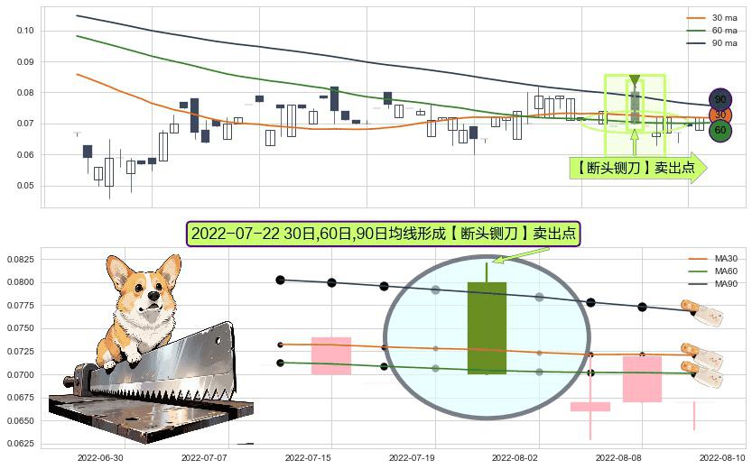 形态多维评估: ⚀ 2022-07-22日显现 30日-60日-90日均线 【断头铡刀】卖出点 看空信号,后市看跌,卖出
