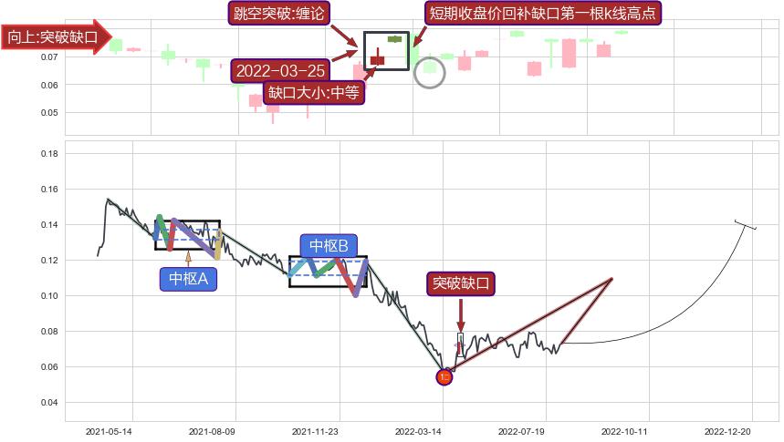 ➣ 突破缺口形成后,后续k已经超过14根,跳空突破缠论中枢点关键点后, 出现【完全回踩】迹象,短期收盘价回补缺口第一根k线低点