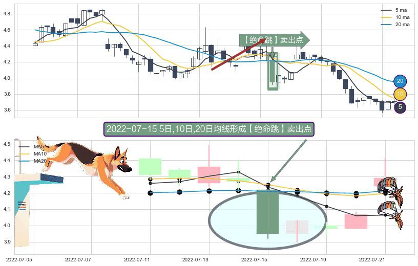 ⚀ 2022-07-15日显现 5日-10日-20日均线 【绝命跳】卖出点 看空信号,后市看跌,卖出