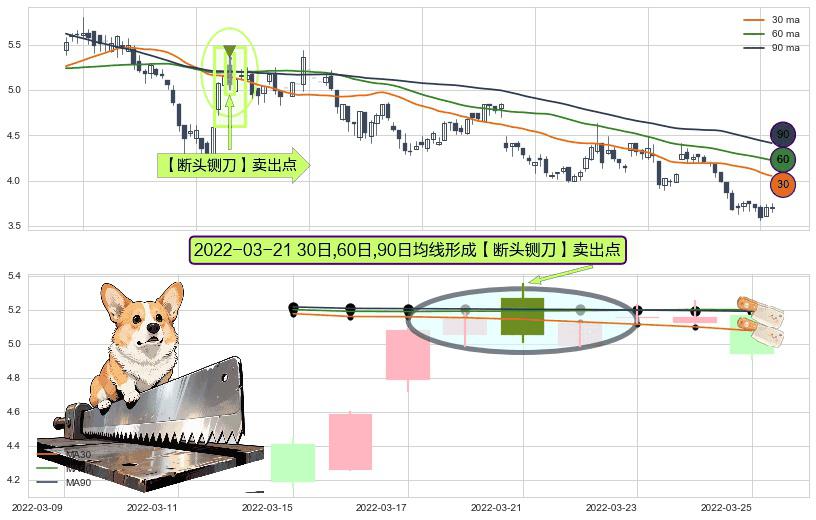 ⚀ 2022-03-21日显现 30日-60日-90日均线 【断头铡刀】卖出点 看空信号,后市看跌,卖出