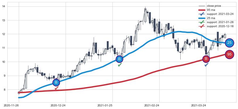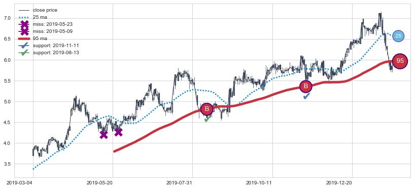 ⚁ MA60和MA90走势平行,且始终保持在短距离内,MA120始终在短中期均线上方,与短中期均线保持一定的距离,微微下行