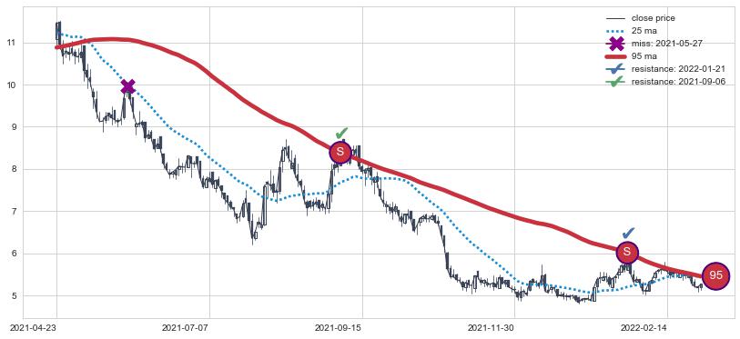 ⚂ 2022-04-08-日均线向上突破,2022-04-11-日重新下穿均线破位,均线阻力再次生效