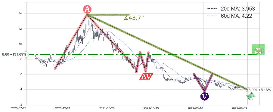 ♘ 阻力价格位8.60,可信任强度94.22%,距离最后交易2022-08-12形成的收盘价格3.710相差 +131.69%
