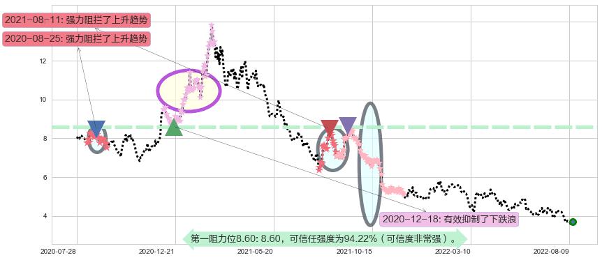 2021-09-06: 第一阻力位8.60强力阻拦了上升趋势,成功阻止了价格的继续上涨。