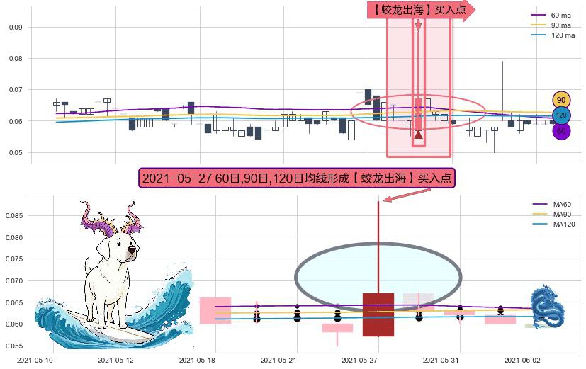 ⚀ 2021-05-27日显现 60日-90日-120日均线 【蛟龙出海】买入点 看多信号,后市看涨,买入