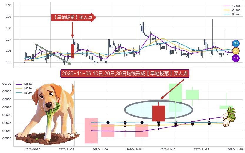 ⚀ 2020-11-09日显现 10日-20日-30日均线 【旱地拔葱】买入点 看多信号,后市看涨,买入
