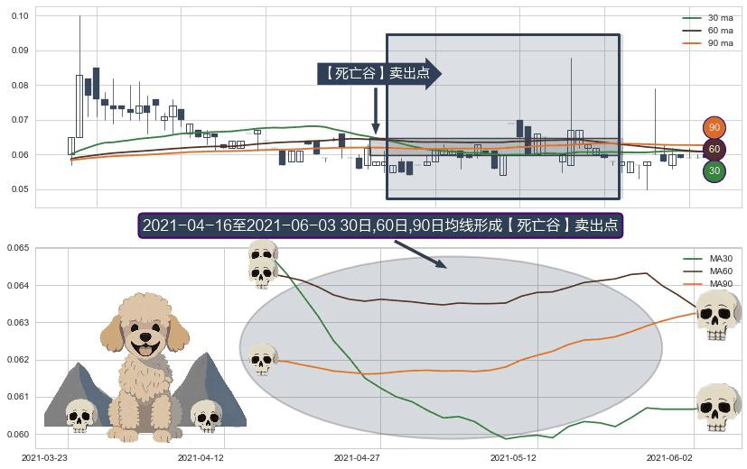 ⚀ 2021-04-19-日至2021-06-03-日显现 30日-60日-90日均线 【死亡谷】卖出点 看空信号,后市看跌,卖出