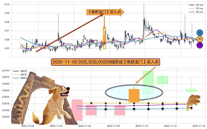 ⚀ 2020-11-09日显现 20日-30日-60日均线 【鱼跃龙门】买入点 看多信号,后市看涨,买入