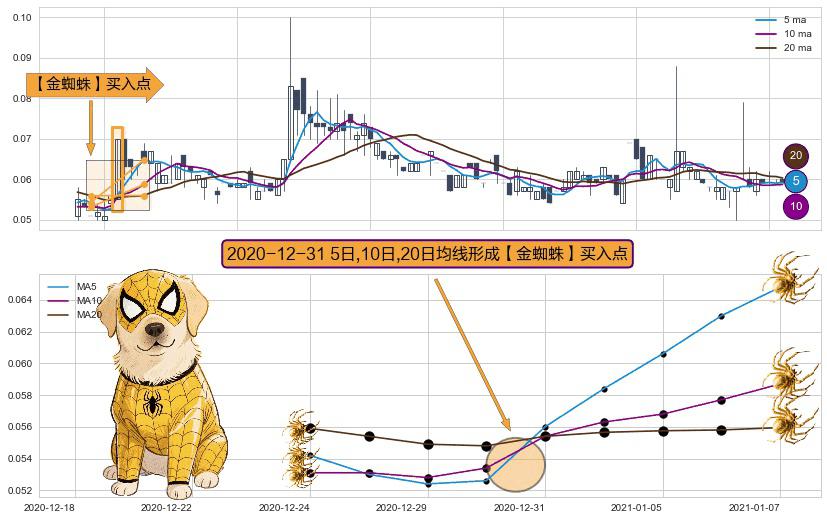 ⚀ 2020-12-31日显现 5日-10日-20日均线 【金蜘蛛】买入点 看多信号,后市看涨,买入