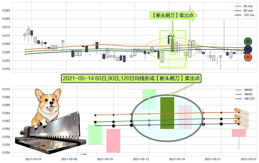 ⚀ 2021-05-14日显现 60日-90日-120日均线 【断头铡刀】卖出点 看空信号,后市看跌,卖出