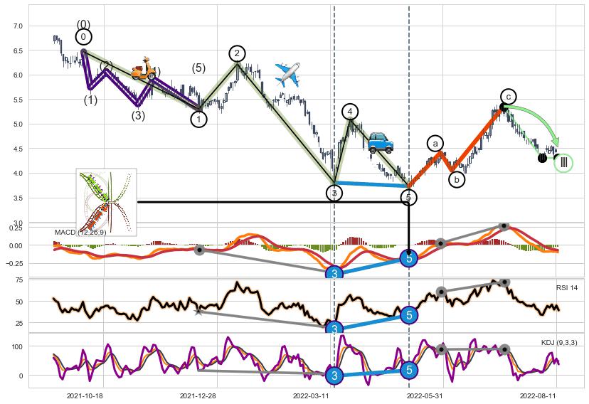 ➢ a,c调整浪MACD, RSI, KDJ走势都【未出现】背离,abc走势延续, 5浪反转概率增强