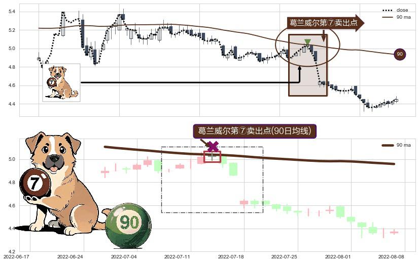 ⚀ 2022-07-13-日显现 葛兰威尔均线 90日均线 第⑦卖出点 下降趋势的中继信号,后市看跌,卖出信号