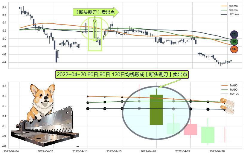 ⚀ 2022-04-20日显现 60日-90日-120日均线 【断头铡刀】卖出点 看空信号,后市看跌,卖出