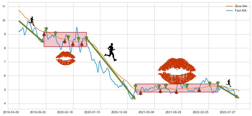2021-01-21至2022-04-20 慢线与快线多次接触,存在上下穿越,有缠绕