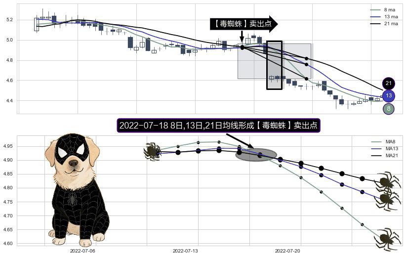 ⚀ 2022-07-18日显现 8日-13日-21日均线 【毒蜘蛛】卖出点 看空信号,后市看跌,卖出