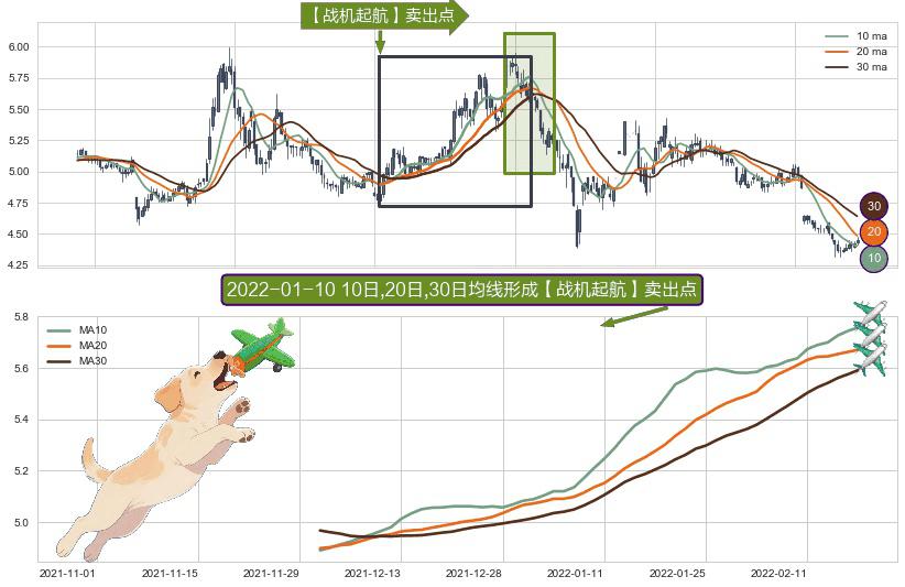 ⚀ 2021-12-01日-2022-02-18日显现 10日-20日-30日均线 【战机起航】卖出点 看空信号,后市看跌,卖出