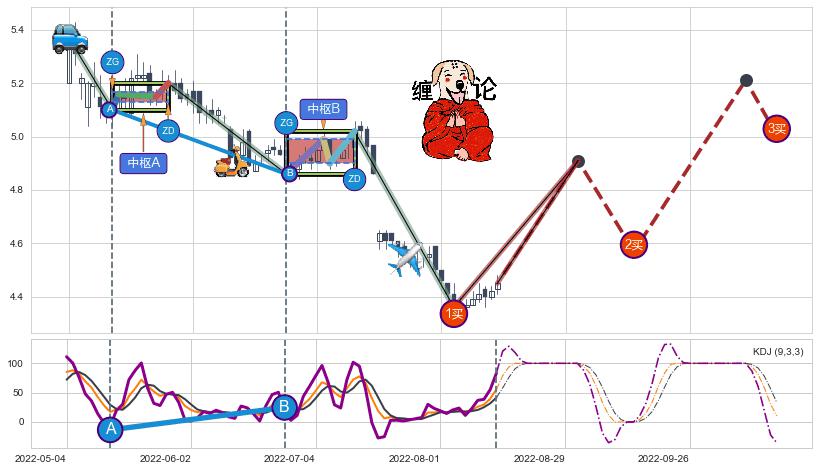 ➣ 【已完成】缠论 起点:2022-05-04,完成第1中枢A,完成第2中枢B,终点:2022-08-03,缠论共70交易日